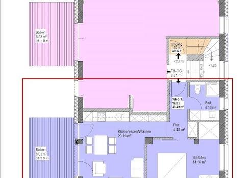 Die Wohnung mit ca. 49 m² überzeugt durch einen modernen und gut durchdachten Grundriss. Der helle Wohn-/Ess-/Kochbereich bildet das Herzstück der Wohnung und bietet direkten Zugang auf den Balkon mit ca. 12,06 m² – ideal zum Entspannen und Genießen im Freien. Zu der Wohnung gehören noch ein stilvolles Schlafzimmer und ein modernes Badezimmer mit Dusche, WC und Waschbecken.