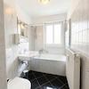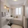 Das Badezimmer mit Fenster und Badewanne sowie die funktional gestaltete Diele runden das Raumangebot im Erdgeschoss stimmig ab.
