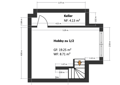 Hier steht ein großzügiger Hobbyraum (anteilig zur Wohnfläche angerechnet) zur Verfügung, der sich hervorragend als Arbeits-, Fitness- oder Kreativbereich eignet. Ergänzt wird diese Ebene durch einen separaten Kellerraum mit zusätzlicher Abstellfläche.