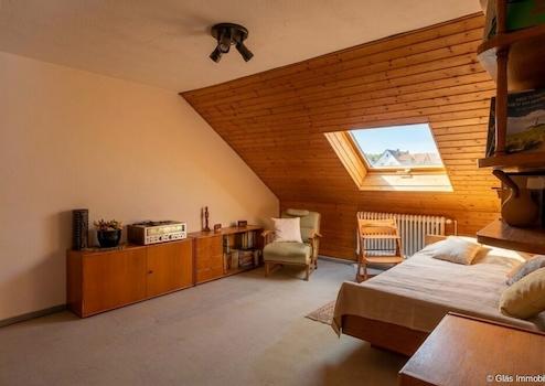 Auch das Obergeschoss überzeugt mit einer großzügigen Raumaufteilung und bietet in Verbindung mit dem Dachgeschoss eine vollwertige zweite Wohneinheit. Eine Küche, ein großzügiger Wohn- und Essbereich sowie ein weiteres Zimmer stehen hier zur Verfügung. Der Balkon ist vom Esszimmer aus zugänglich – ideal, um den Tag mit einem Kaffee an der frischen Luft zu beginnen oder den Abend entspannt ausklingen zu lassen.