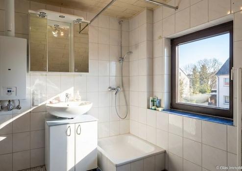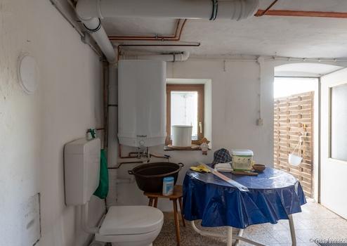 Die Waschküche ist mit einem Waschbecken und einer Toilette ausgestattet. Zudem befindet sich hier die Heizungsanlage. Für Waschmaschine und Trockner steht ausreichend Platz zur Verfügung. Von der Waschküche aus besteht ein ebenerdiger Zugang zum Grundstück.