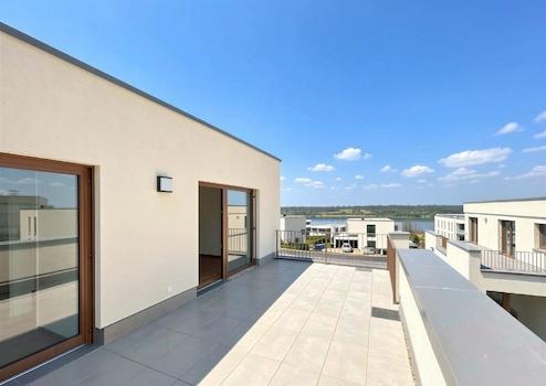 Ein besonderes Highlight befindet sich im Dachgeschoss: Hier liegt das großzügige Masterschlafzimmer mit direktem Zugang zur traumhaften Dachterrasse, von der aus Sie einen seitlichen Blick auf den schönen Zwenkauer See genießen. Ein weiteres Zimmer auf dieser Ebene eignet sich hervorragend als Ankleide oder Homeoffice. Der Hauswirtschaftsraum ergänzt das Angebot.