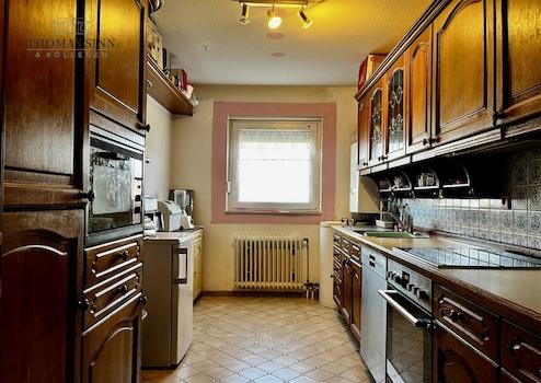 Die separate Küche mit einer älteren Einbauküche bietet ausreichend Platz zum Kochen und Arbeiten. Durch das Fenster ist sie gut belichtet und belüftet und lässt sich individuell nach eigenen Vorstellungen gestalten.