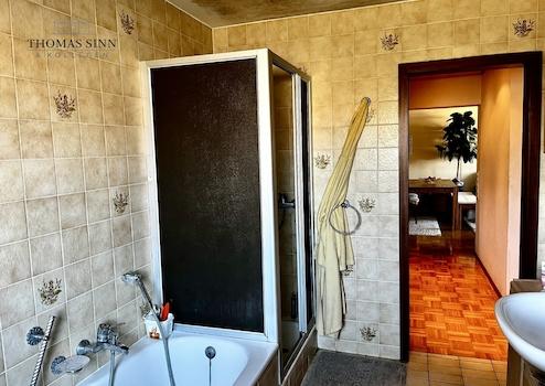 - Badezimmer mit Dusche, Badewanne, WC und Waschtisch