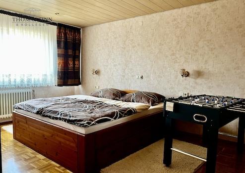 Das großzügige Elternschlafzimmer bietet ausreichend Platz für ein Doppelbett und einen großen Kleiderschrank und dient als angenehmer Rückzugsort. Ein weiteres Zimmer eignet sich ideal als Kinderzimmer, Gästezimmer oder Homeoffice und bietet flexible Nutzungsmöglichkeiten.