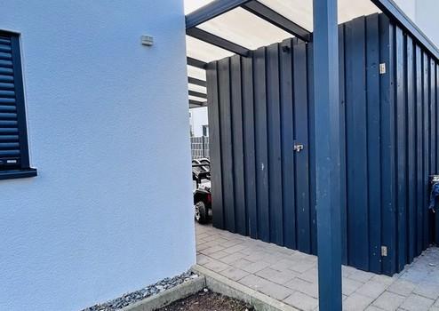Weiterhin befindet sich unmittelbar an das Haus angrenzend ein großes, beleuchtetes Carport, worunter ein Schuppen für weiteren Stauraum verbaut wurde.