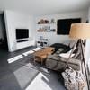 - Bodenbeläge aus Eichen-Parkett und grauen Feinsteinzug-Fliesen (0,80m x 0,80m)