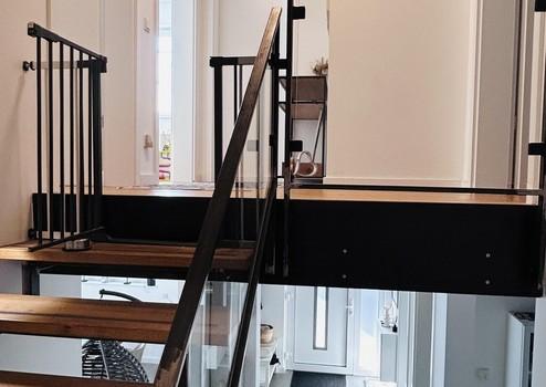 Die eindrucksvolle Doppelhaushälfte im Bauhausstil hat eine Wohnfläche von ca. 125 qm verteilt auf 4,5 Zimmer.
