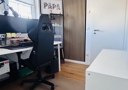 Ankleidebereich. Der Ankleidebereich bietet ebenso ein Fenster sowie eine Tür, wodurch die jetzigen Eigentümer daraus ein Arbeitszimmer errichtet haben.