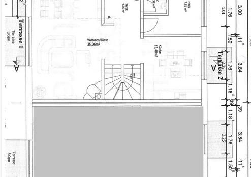 Eine großzügige, helle Diele empfängt die Bewohner und Gäste dieser Immobilie. Wohnen und Essen werden miteinander vereint. Der Küchenbereich mit Kochinsel ist separat, jedoch durch die offene Wohnraumgestaltung auch vom Wohnbereich einsehbar. Von der Küche ist eine kleine Terrasse und ein kleines Gartenstück zur Nordseite betretbar, wo es in warmen Sommertagen stets schattig und angenehm zum verweilen ist.
