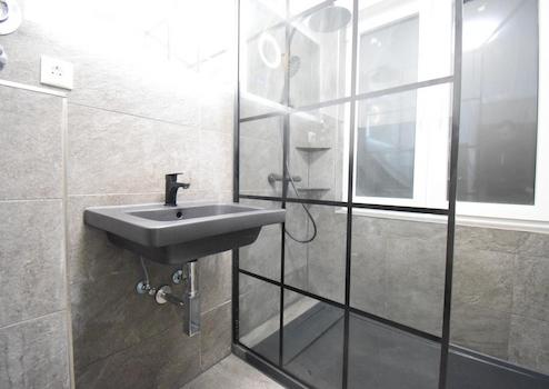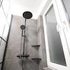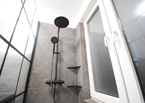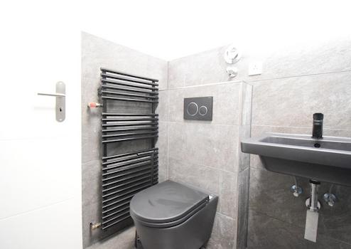 ✔ Modern gestaltetes Bad – mit hochwertigen Fliesen, stilvollen Armaturen und klarer Optik