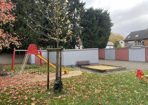 * Grüner Innenhof mit gepflegtem Spielplatz