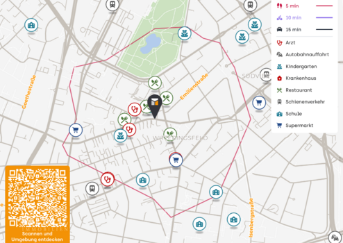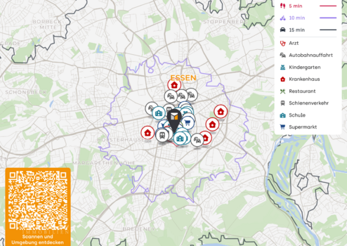 Auch verkehrlich ist die Adresse ausgesprochen vorteilhaft eingebunden. Die Messe Essen hebt die schnelle Erreichbarkeit über die wichtigen Rhein-Ruhr-Autobahnen A52, A3, A40 und A42 hervor. Gerade für ein Anlageobjekt ist diese Anbindung von hoher Relevanz, da sie die Lage nicht nur innerstädtisch, sondern auch regional attraktiv macht. Die Kombination aus urbanem Wohnumfeld, leistungsfähiger Verkehrsinfrastruktur und der Nähe zu überregional bedeutsamen Einrichtungen schafft ein seltenes Gesamtpaket, das in dieser Form nur wenige Essener Standorte bieten.