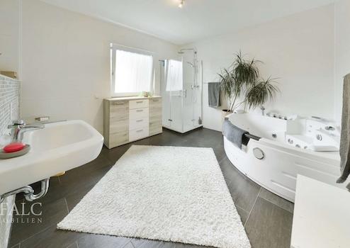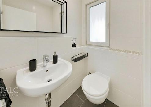 Die Badezimmer sowie das Gäste-WC sind funktional und modern ausgestattet und verfügen über zeitgemäße Sanitärobjekte, darunter Duschen, Waschbecken und hochwertige Armaturen. Eine vollständige Sanitärinstallation inklusive Außenwasseranschluss ist ebenfalls vorhanden.