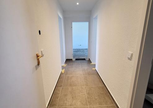 Die Wohnung wurde 2025 von Grund auf saniert und verfügt über ein modernes, hochwertig ausgestattetes Duschbad, großformatige Fliesen in Bad, Flur und Küche, Vinylfußboden in allen Zimmern, 2 Einbauschränke, neue Heizkörper, neue Elektrik, LED-Beleuchtung in Flur und Bad, elektrische Rolläden, Kabelanschluss, Glasfaser-Internetanschluss (FTTB), Strukturverkabelung (Cat. 6a) in allen Zimmern. Alle Außenwände und Decken verfügen über eine zusätzliche Innenisolierung, alle Räume sind neu tapeziert (Raufaser) und weiß gestrichen.