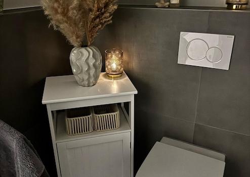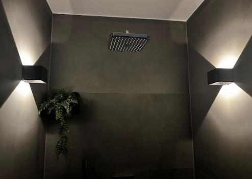 - Badezimmer mit modernen hochwertigen Fliesen. Bodentiefen Duschen.