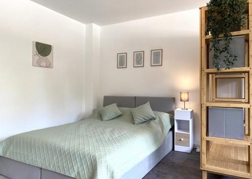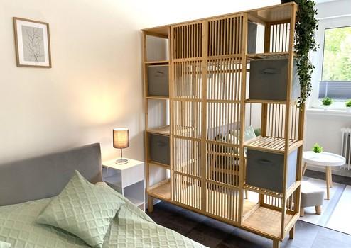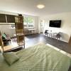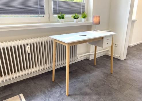 Die Wohnung wird voll möbliert vermietet und bietet alles, was man für den sofortigen Einzug benötigt. Der Wohn- und Schlafbereich ist mit einem komfortablen 140x200 cm Bett, einem Nachttisch, einem offenen Kleiderschrank sowie einer gemütlichen Sitzgelegenheit mit 2er-Sofa und Beistelltisch ausgestattet. Ein Esstisch mit zwei Stühlen sowie ein Schreibtisch bieten sowohl Platz zum Essen als auch zum Arbeiten.
