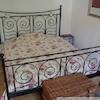 Doppelbett, großer Holzkleiderschrank, Metallregal, 2 Nachttische mit kleiner Nachtlampen, Wäschekiste, kleiner Stuhl, diverse Dekorationen, Bettwäsche, Decken und Kissen