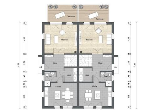 - individuell planbarer Grundriss im Obergeschoss