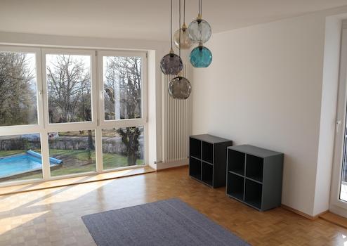 Die Immobilie ist frei und kann sofort bezogen werden. Übernahme von Einrichtungsgegenständen nach Absprache. Bei der angegebenen Wohnfläche handelt es sich um eine ungefähre Angabe ohne Einberechnung von Terrasse, Balkonen, Abstellräumen und ohne Schwimmbad. Der große Abstellraum im Obergeschoss wurde im Zuge des Umbaus 2006 zur Wohnfläche umgebaut und ist (ab einer Höhe von 1m) zur Hälfte in der Wohnflächenberechnung berücksichtigt.