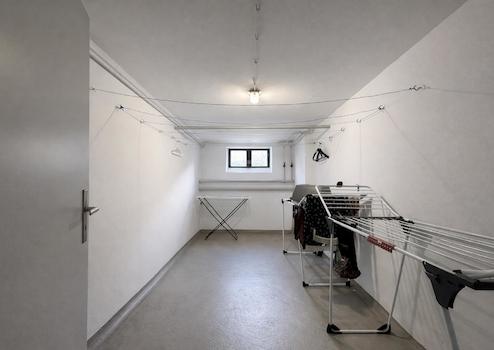Zur Wohnung gehört ein eigenes Kellerabteil. Das Kellergeschoss ist trocken und ordentlich und verfügt über gemeinschaftliche Wasch- und Trockenräume. Zudem ist ein gemeinschaftlich nutzbarer Garten vorhanden.