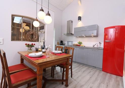 Diese außergewöhnliche Wohnung befindet sich im ehemaligen Gewerbeteil der alten Meierei in Bohnert, die 2016 zu Wohnraum umgewandelt und kernsaniert wurde. Das Haus besteht insgesamt aus 3 Wohneinheiten. Die Wohnfläche von 78qm verteilen sich über 2,5 Etagen und ist im offenen Loft-Stil gestaltet. Die Zimmer sind nicht strikt durch Wände getrennt, sondern gehen fließend ineinander über. Bei der Sanierung wurden historische Elemente des ehemaligen Gewerbebaus erhalten und mit modernem Wohnraum kombiniert.