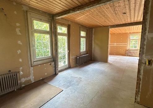 Das Erdgeschoss welches mit ca. 173 m², der alten Bahnhofshalle, dem Wartesaal, Dank gräflicher Nachbarschaft auch Erster Klasse, dem Stellwerk sowie seinen weiteren hellen, sehr hohen Räumen, teilweise mit Natursteinböden aus Buntsandstein ausgelegt ist, eignet sich wunderbar, zum Beispiel für eine Kreativwerkstatt, ein Atelier, Büroräumlichkeiten oder auch eine Gastronomie. Bestimmt haben Sie eigene Vorstellungen dazu.