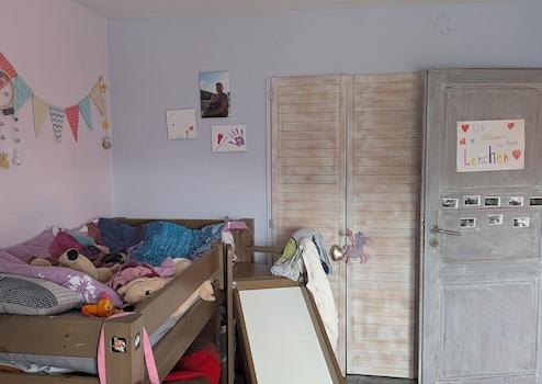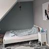 Der Dachboden wurde vollständig isoliert und zu einem charmanten Spielzimmer mit umfangreichen Lagermöglichkeiten ausgebaut. Eine praktische Raumspartreppe führt