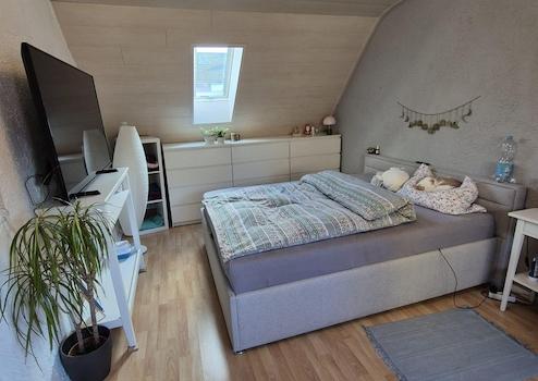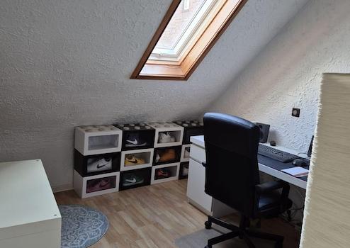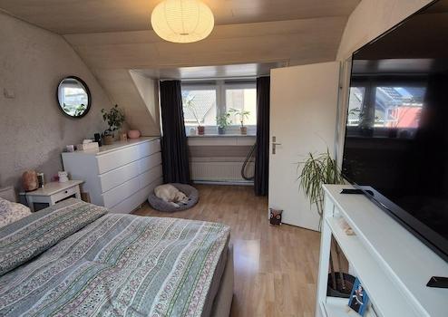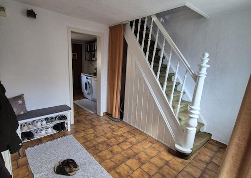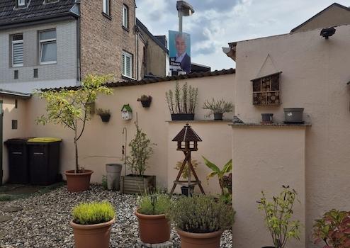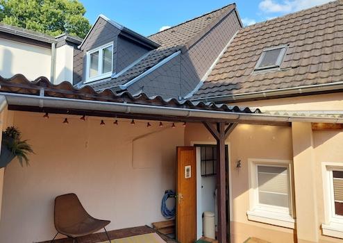 Es verfügt über ein Voll- sowie ein Dachgeschoss. Neben einer angenehmen, ruhigen Wohnlage hat das Haus ein besonderes Highlight zu bieten: der sehr private, gemütliche und große Innenhof mit West-Ausrichtung. Er lässt sich als Terrasse nutzen. Auch ein Abstellraum gehört zum Innenhof sowie die Möglichkeit, Wäsche überdacht aufzuhängen. Die Beheizung erfolgt mittels Vaillant Gaszentralheizung. Die weißen Fenster sind isolierverglast und im Erdgeschoss mit Rollläden zu verdunkeln. Der Hauseingang und die Küche sind mit Keramikfliesen ausgestattet. Im renovierten Badezimmer gibt es ein Fenster mit Tageslicht. Von der direkt ans Haus grenzenden Garage, gelangt man in den Innenhof und den hinteren Hauseingang. Der Mieter trägt die Heiz- und Verbrauchskosten selbst.