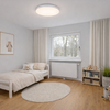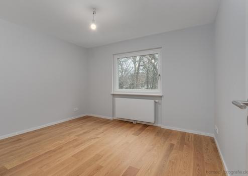 Schlafzimmer und Wohnzimmer verfügen über nahezu raumbreite Fenster. Auch die übrigen Fenster sorgen durch ihre Größe für viel Tageslicht und einen angenehmen Ausblick ins Grüne.