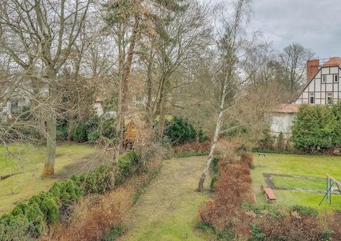 Großzügige Fensterflächen und der Süd-West-Balkon ermöglichen einen schönen Blick in den alten Baumbestand.