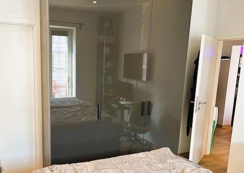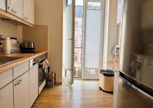 Die hochwertige Einbauküche (mitsamt Elektrogeräten und Kühlschrank) und ein maßangefertigter Kleiderschrank (siehe Fotos) können vom Vormieter für 500 EUR übernommen werden.