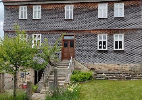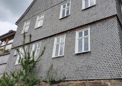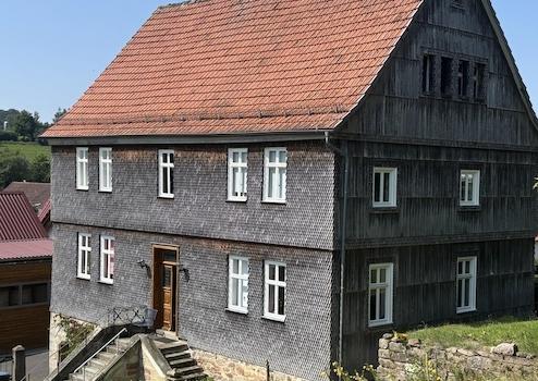 Dieses unter Denkmalschutz stehende Fachwerkhaus zählt zu den ältesten Gebäuden des Ortes und beeindruckt mit seiner hervorragenden Bausubstanz sowie einem einmaligen Wohnkomfort. Das Haus wurde mit Eichenbalken errichtet und verfügt über Lehmwände, die sowohl im Sommer als auch im Winter für ein äußerst angenehmes Raumklima sorgen. Die Außenfassade ist zudem verschindelt und verleiht dem Gebäude ein unverwechselbares Erscheinungsbild.