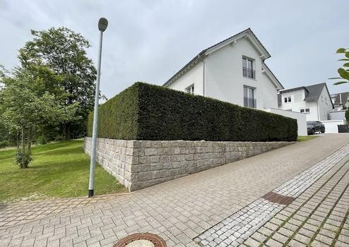 • Gepflegter Garten mit Granitmauer und Sichtschutz