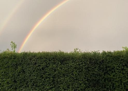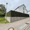 Ein sehr gepflegter Garten mit aufwändiger Gartenmauer aus Granit und dicht bepflanzter Taxus-Eibenhecke schafft eine private, stilvolle Atmosphäre – perfekt für Erholung und ruhige Stunden im Freien.