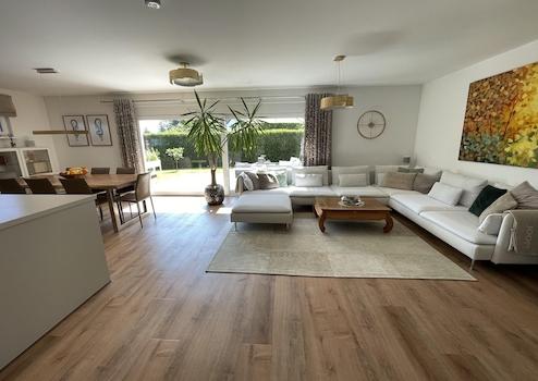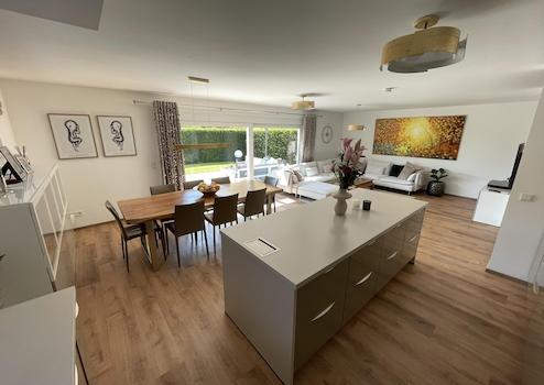 Das Haus begeistert durch helle, freundliche Räume, die den ganzen Tag über von natürlichem Licht durchflutet werden. Die offene Gestaltung schafft ein modernes, einladendes Wohnambiente mit viel Platz für gemeinsames Leben, Entspannen, Wohlfühlen und Feiern.