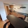 Das attraktiv geflieste Badezimmer überzeugt durch eine Badewanne und eine separate Dusche. Es bietet zudem ausreichend Stellfläche für eine Waschmaschine und einen Kondenstrockner, die praktisch nebeneinander platziert werden können. Für zusätzlichen Komfort sorgen eine elektrische Fußbodenheizung sowie ein Handtuchtrockner, der über die Heizungsanlage und zusätzlich elektrisch betrieben werden kann. Die Räume verfügen über Abluftlüfter in Bad und Küche für ein angenehmes Raumklima.