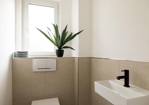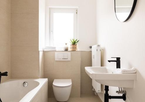 - Badezimmer mit neuer Badewanne und Premium-Armaturen
