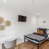 All rooms are rented fully furnished with bed incl. mattress and mattress protector (incl. bed linen), wardrobe, desk, desk chair, TV and other furnishings (see photos). Of course you can also bring your own furniture if you wish.