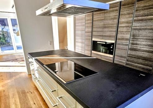 Die Gourmet-Küche: Eine Poggenpohl-Luxusküche (Möbelwert 60.000 €) mit einer gigantischen Kochinsel (1,25 m x 2,50 m) bildet das Herzstück des Erdgeschosses.