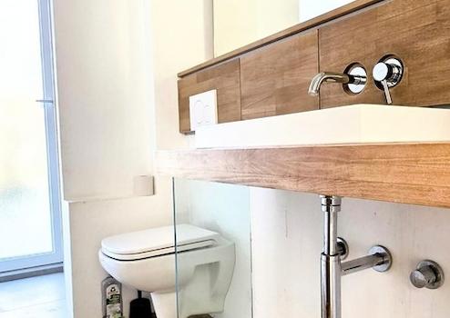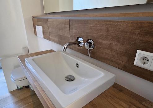 - Design Gästebad mit begehbarer Großraumdusche und maßgefertigten Einbauten