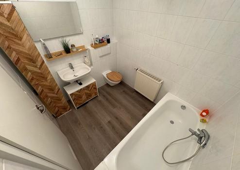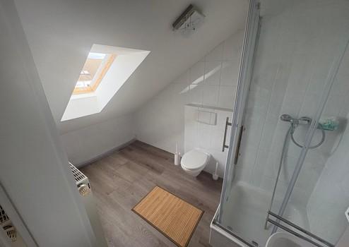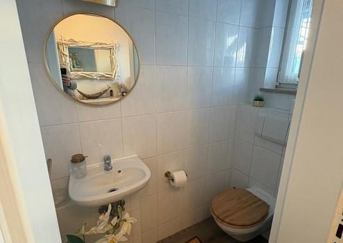 Badezimmer: Zwei helle Bäder (1x Wannenbad im OG, 1x Duschbad im DG) sowie ein separates Gäste-WC im Erdgeschoss.