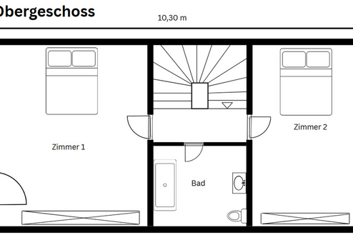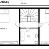 Obergeschoss: Zwei helle Zimmer, ein Badezimmer mit Badewanne sowie ein sonniger Südbalkon.