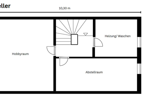 Kellergeschoss: Großer, wohnlicher Hobbyraum (ideal für Home-Office oder Fitness), Vorratskeller sowie Waschraum mit Platz für Waschmaschine und Trockner.