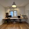 Arbeitszimmer hinaus in den Garten bietet. Den Mittelpunkt