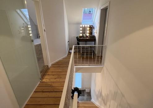 mit Dusche. Die Fenster im Treppenaufgang sorgen für eine