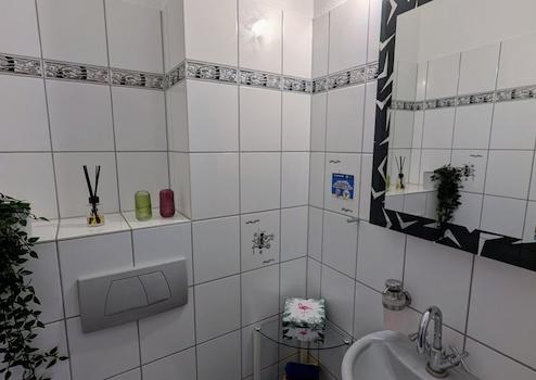 Es stehen zwei Bäder zur Verfügung: ein Tageslichtbad mit Duschwanne sowie ein separates Gästebad. Die Gas-Etagenheizung wurde im Februar 2024 durch ein modernes, sparsames Viessmann Gerät ersetzt. Heizung und Warmwasserspeicher sind außerhalb der Wohnung unter dem Dach installiert und beanspruchen keinen Wohnraum.