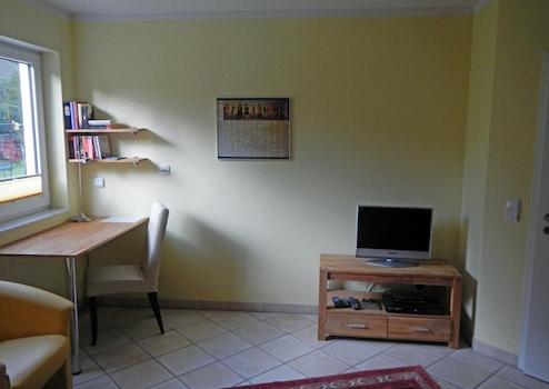 1 Wohn-Schlafraum, 1 Wohnküche, Diele, Bad mit Dusche und WC, ein kleiner Abstellraum (9 qm). Alle Böden durchgängig gefliest mit Fußbodenheizung.