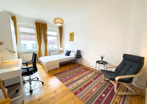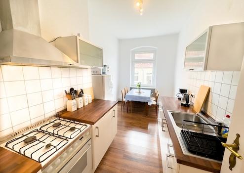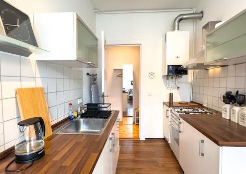 The flat has two rooms suitable to trainees, interns, or professionals who come to Berlin for a temporary stay. The option of a main tenant subletting the other room to their flatmate is available. In this case, however, the landlord needs to approve this flatmate. The tenants shall find an agreement among themselves in order to keep the communal areas of the apartment (including the kitchen and bathroom) clean. A vacuum cleaner, cleaning accessories, an ironing table and an iron are available to the tenants of the flat. The stairwell are cleaned by the property management.
