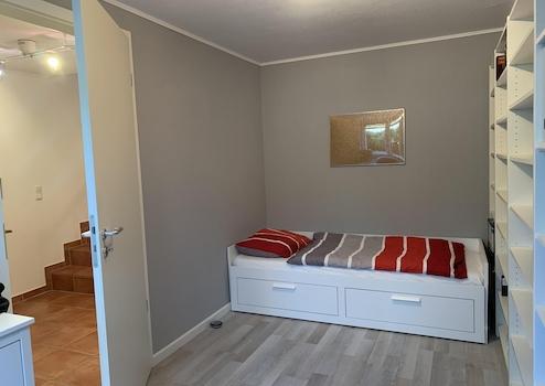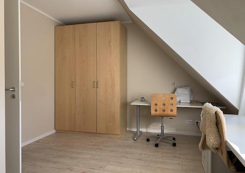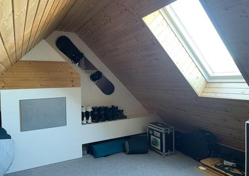• Die Grundfläche des nördlichen Schlafzimmers ist geringfügig größer. Zwei Dachfenster lassen auch hier viel Tageslicht einfallen.